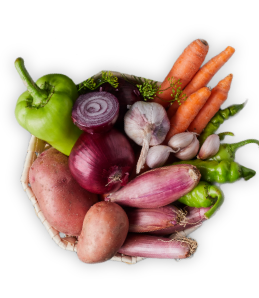 Produzimos a maioria dos legumes na nossa horta, e tentamos sempre aliarmo-nos a outros produtores da nossa região, cuidadosamente seleccionados e que nos apresentam uma lista de produtos o mais variada possível. Apenas quando as produções nacionais não podem satisfazer as nossas necessidades é que recorremos ao mercado internacional.